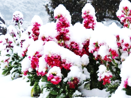 樹氷?? 2026.02.12 トピックス 2026年2月7日から8日にかけて袖ケ浦市にも雪が降りました。 誇大な言い方をするとストックの樹氷の様にも見えませんか? 撮影 2026年2月8日 梅園 開花状況 前の記事